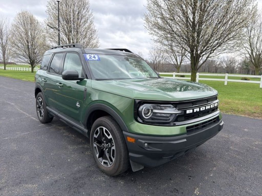 2024 Ford Bronco Sport Outer Banks Eruption Green Metallic 4WD 8-Speed Automatic 1.5L EcoBoost **Fully Detailed**, 6 Speakers, AM/FM radio: SiriusXM, Auto-dimming Rear-View mirror, Automatic temperature control, Brake assist, Cargo Mat, Class II Trailer Tow Package w/Trailer Sway Control, Compass, Electronic Stability Control, Emergency communication system: SYNC 3 911 Assist, Equipment Group 300A, Front & Rear Floor Liners w/o Carpet Mats, Front anti-roll bar, Front dual zone A/C, Front fog lights, Fully automatic headlights, HD Radio, Heated door mirrors, Heated front seats, Heated steering wheel, Illuminated entry, Low tire pressure warning, Memory seat, Occupant sensing airbag, Outside temperature display, Power door mirrors, Power Moonroof, Premium-Trimmed Heated Sport Contour Bucket Seats, Rear anti-roll bar, Rear Parking Sensors, Remote keyless entry, Security system, SiriusXM, Speed-sensing steering, Speed-Sensitive Wipers, Steering wheel mounted audio controls, SYNC 3 Communications & Entertainment System, Tech Package, Telescoping steering wheel, Tilt steering wheel, Traction control, Trip computer, Universal Garage Door Opener (UGDO), Wheels: 18" Ebony Black-Painted Aluminum, Wireless Charging Pad.