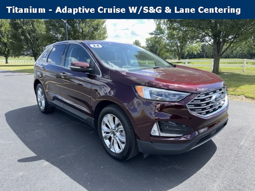 Recent Arrival! 2024 Ford Edge Titanium Burgundy Velvet Metallic Tinted Clearcoat AWD 8-Speed Automatic EcoBoost 2.0L I4 GTDi DOHC Turbocharged VCT **Fully Detailed**, 12 Speakers, ActiveX Trimmed w/FreeForm Sport Bucket Seats, ActiveX-Trimmed Heated Sport Bucket Seats, Adaptive Cruise Control w/Stop & Go, Adaptive LED Headlamps, AM/FM radio: SiriusXM with 360L, Auto-Dimming Driver's Sideview Mirror, Auto-dimming Rear-View mirror, Automatic temperature control, Brake assist, Compass, Connected Navigation, Cooled Front Seats, Electronic Stability Control, Emergency communication system: SYNC 4 911 Assist, Equipment Group 301A, Evasive Steering Assist, FordPass Connect, Front 180-Degree Camera w/Split View, Front anti-roll bar, Front dual zone A/C, Front fog lights, Fully automatic headlights, Garage door transmitter, Heated door mirrors, Heated front seats, Heated Rear Seats, Heated steering wheel, Illuminated entry, Lane Centering, Leather steering wheel, Low tire pressure warning, Memory seat, Occupant sensing airbag, Outside temperature display, Power door mirrors, Power Liftgate, Power passenger seat, Power Tilt/Telescoping Steering Column w/Memory, Radio: B&O Sound System by Bang & Olufsen, Rear anti-roll bar, Remote keyless entry, Security system, SiriusXM w/360L, Speed-Sensitive Wipers, Split folding rear seat, Spoiler, Steering wheel mounted audio controls, SYNC 4A w/Enhanced Voice Recognition, Tachometer, Telescoping steering wheel, Tilt steering wheel, Trip computer, Turn signal indicator mirrors, Wheels: 19" Luster Nickel-Painted Aluminum.