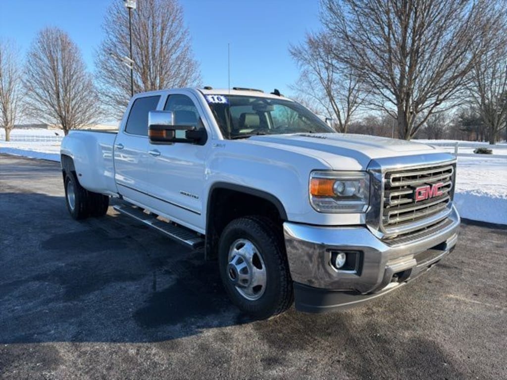 2016 GMC Sierra 3500HD SLT White 4WD Allison 1000 6-Speed Automatic Duramax 6.6L V8 Turbodiesel **Fully Detailed**, 110-Volt AC Power Outlet, 4.2" Diagonal Color Display Driver Info Center, 6 Speakers, 6-Speaker Audio System, Adjustable pedals, AM/FM radio: SiriusXM, Auto-Dimming Inside Rear-View Mirror, Auto-dimming Rear-View mirror, Automatic temperature control, Brake assist, Bumpers: chrome, Chrome Bodyside Moldings, Chrome Door Handles, Chrome Power-Adjustable Heated Outside Mirrors, Color-Keyed Carpeting Floor Covering, Compass, Digital Steering Assist, Dual-Zone Automatic Climate Control, Electric Rear-Window Defogger, Electronic Shift Transfer Case, Electronic Stability Control, Emergency communication system: OnStar Guidance, Exterior Parking Camera Rear, EZ-Lift & Lower Tailgate, Front 40/20/40 Split Bench Seat, Front anti-roll bar, Front dual zone A/C, Front Halogen Fog Lamps, Fully automatic headlights, Garage door transmitter, HD Radio, Heated door mirrors, Heated Driver & Front Passenger Seats, Heated front seats, High-Intensity Discharge Headlights, Illuminated entry, Leather-Appointed Seat Trim, Leather-Wrapped Steering Wheel, LED Cargo Box Lighting, Manual Tilt-Wheel/Telescoping Steering Column, Memory seat, Occupant sensing airbag, OnStar Guidance Plan For 6 Months, OnStar w/4G LTE, Outside temperature display, Pedal memory, Power Adjustable Pedals, Power door mirrors, Premium audio system: IntelliLink, Radio: AM/FM/SiriusXM w/IntelliLink, Rear 60/40 Folding Bench Seat (Folds Up), Rear step bumper, Rear Vision Camera w/Dynamic Guide Lines, Remote Keyless Entry, Remote Locking Tailgate, Remote Vehicle Starter System, Security system, SiriusXM Satellite Radio, Speed-sensing steering, Standard Suspension Package, Steering Wheel Audio Controls, Steering wheel mounted audio controls, Telescoping steering wheel, Tilt steering wheel, Traction control, Trailering Equipment, Trip computer, Turn signal indicator mirrors, Unauthorized Entry Theft-Deterrent System.